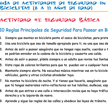 Informacion de Seguridad en Bicicleta para Ninos de 8 a 11 Anos